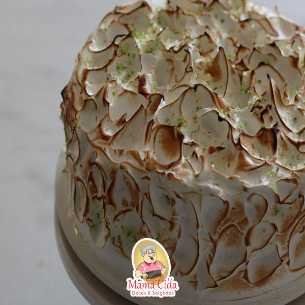 Massa Branca, umedecida com calda com delicioso recheio com uma camada de creme baunilha e outra de creme de limão e cobertura de chantily com raspas de limão.