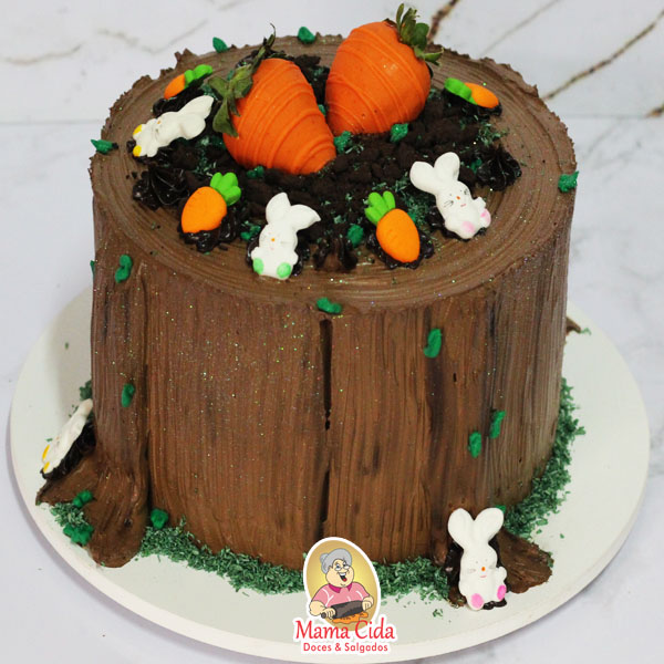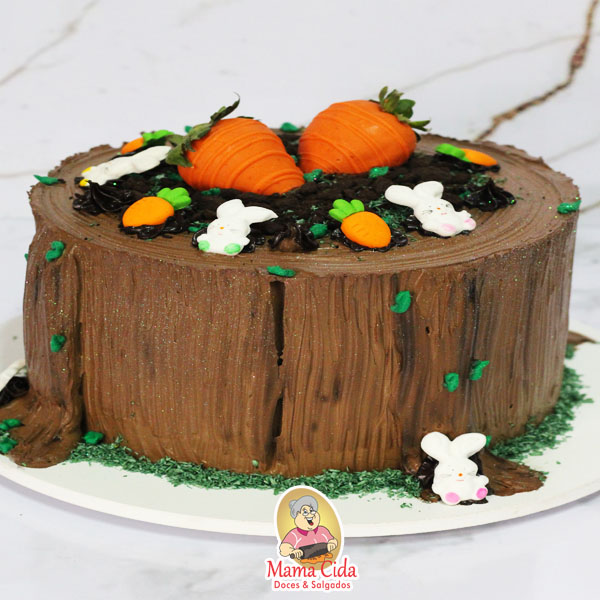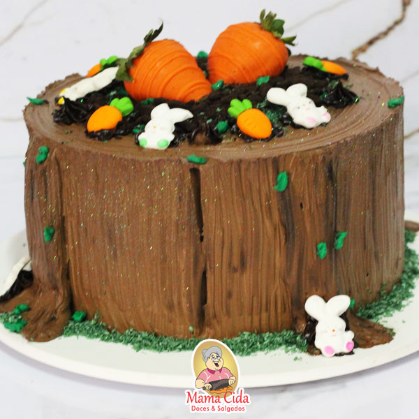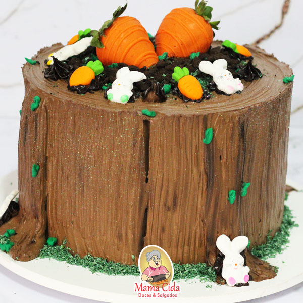 – 1 Bolo com massa de chocolate ou massa de baunilha ou massa red velvet, molhado com nossa calda especial, recheado com sabor de sua preferência e decorado com tama de Páscoa