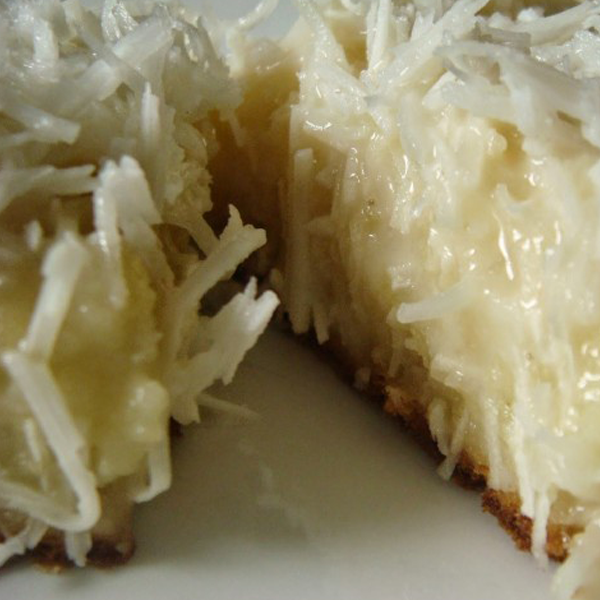 Coco: Leite condensado, coco ralado, manteiga, açúcar, creme de leite.