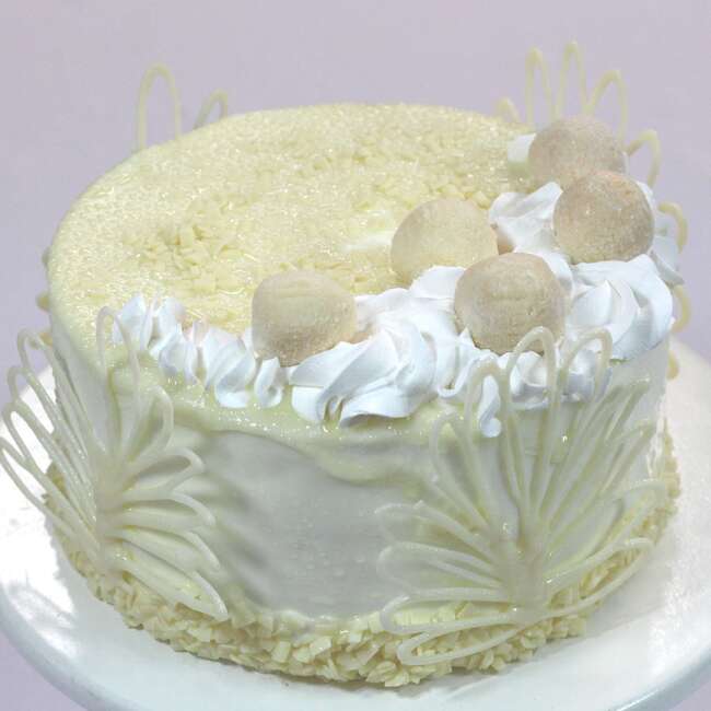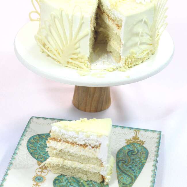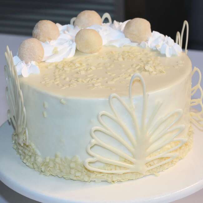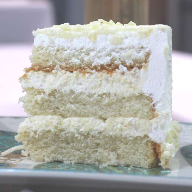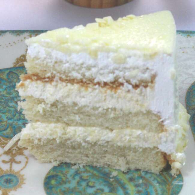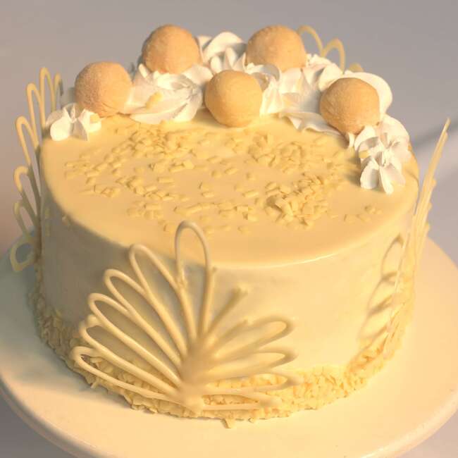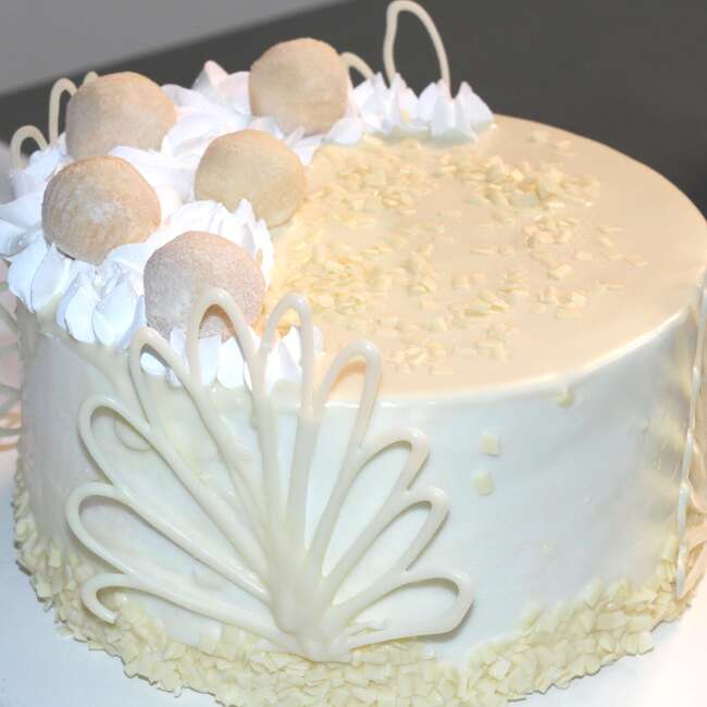 – 1 Bolo com massa de pão de ló de baunilha, recheado com mousse de leite em pó, coberto com ganache de chocolate branco ou chantilly.