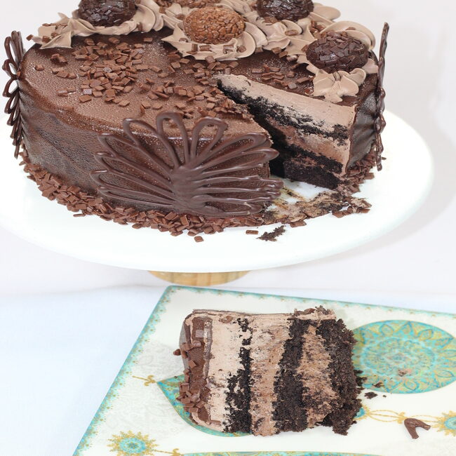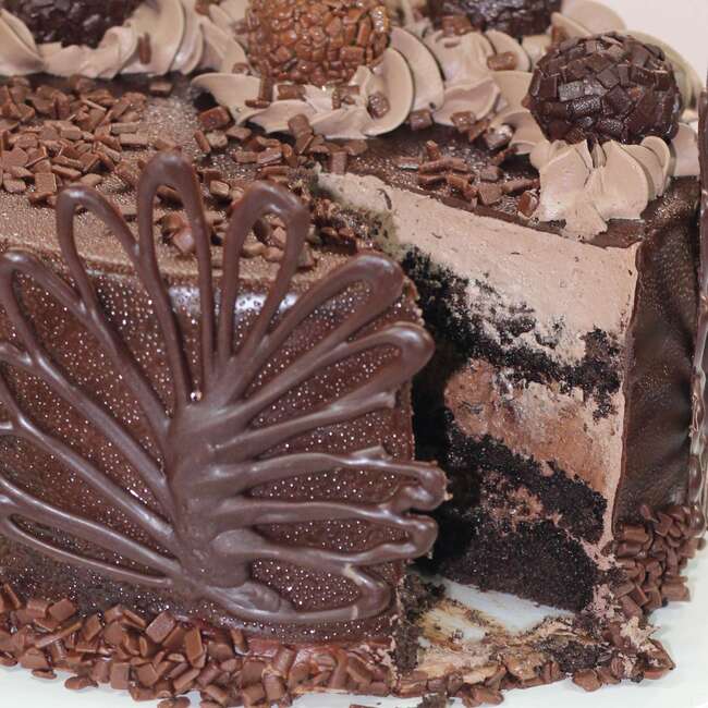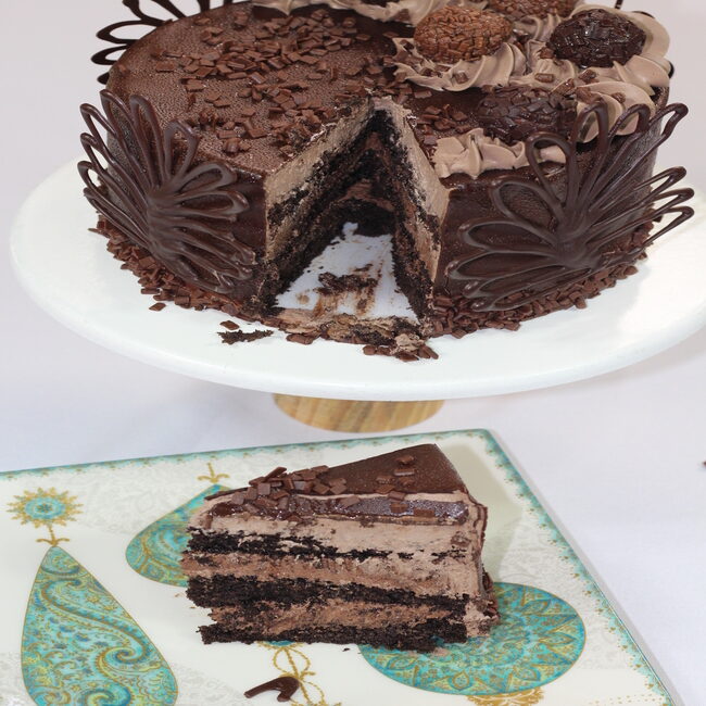 – 1 Bolo com massa de pão de ló de chocolate com recheio de nutella coberto com ganache de chocolate ou chantilly de chocolate.