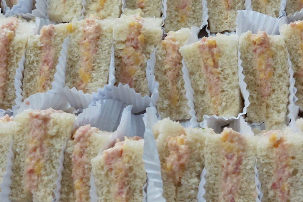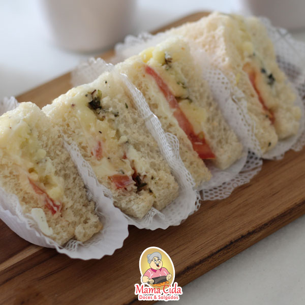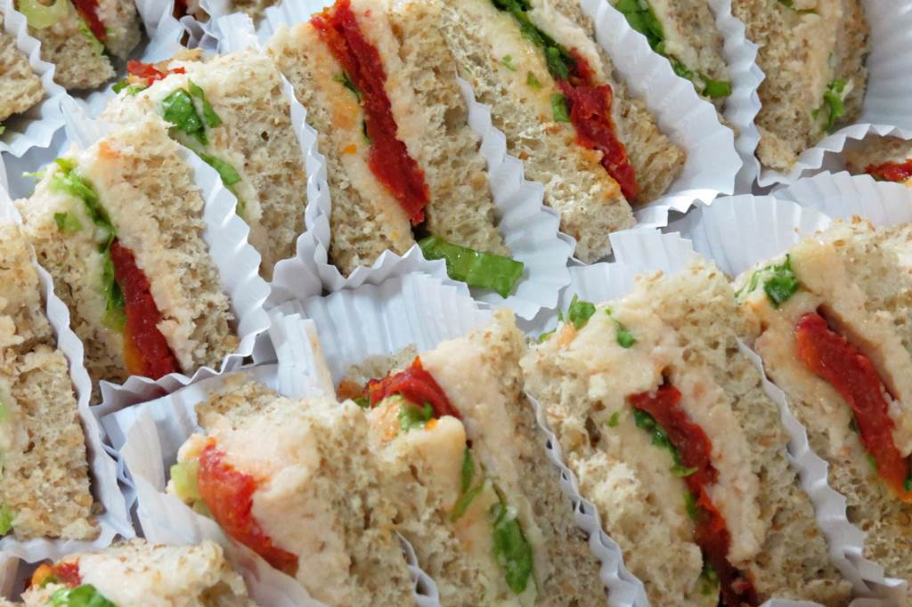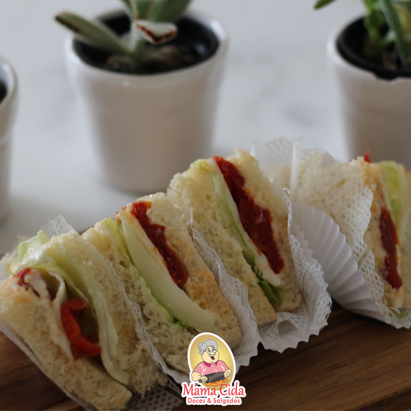 Mini lanchinhos naturais no pão de forma com recheio de sua escolha, prontos para consumo.