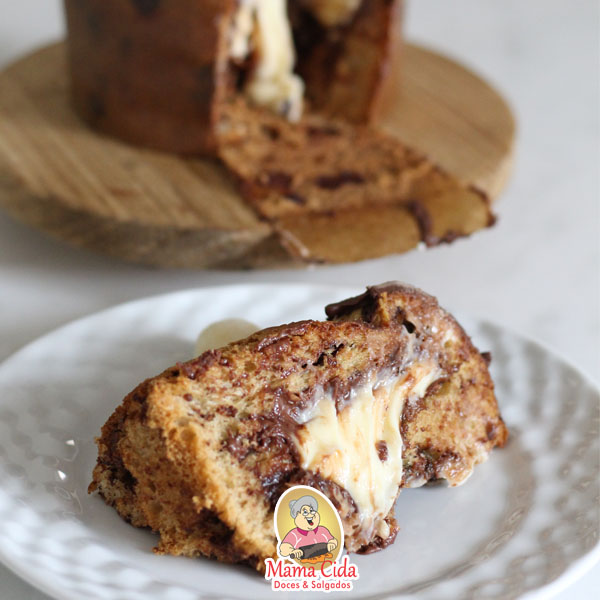 1 Panetone com massa tradicional e frutas secas cristalizadas recheado com nosso cremoso brigadeiro de leite ninho e o tradicional creme de avelã Nutella. Coberto com chocolate e brigadeiro de nutella e leite nionho.
