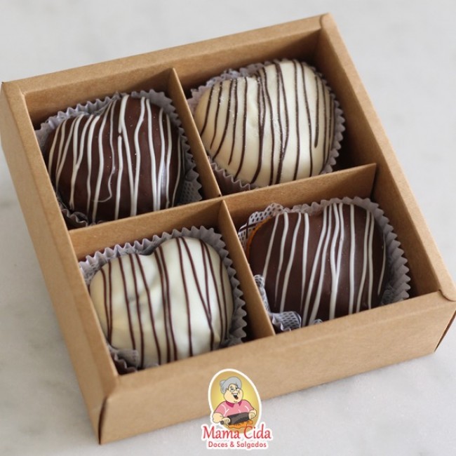 Caixa com 4 mini bolos caseiros recheados em formato de coração, para presentear uma pessoa querida ou apenas para matar aquela vontade de um bolinho caseiro.