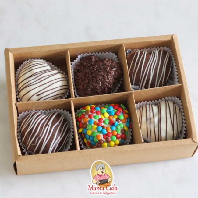 Caixa com 6 mini bolos caseiros variados, em forma de coração e recheados!
